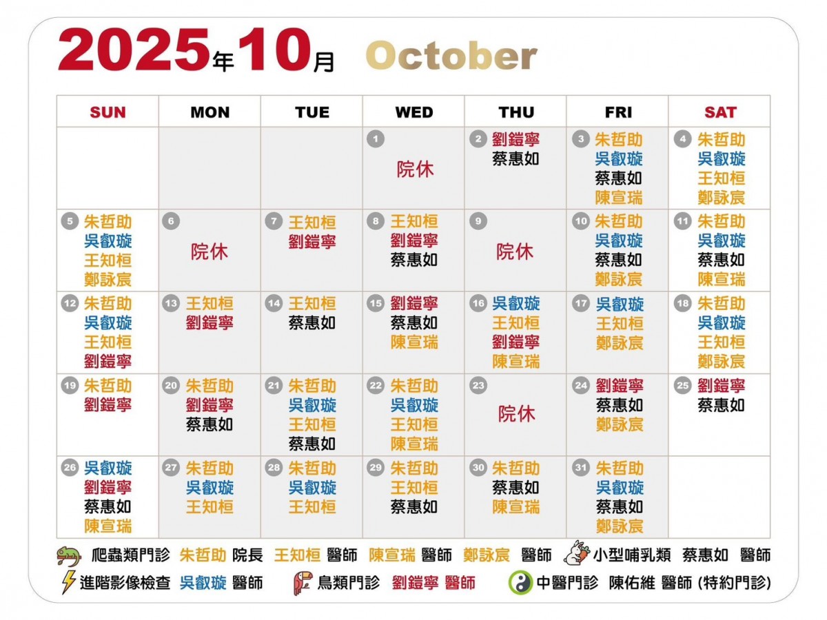 ⛔️ 十月份院休日期為:10/1、10/6、10/9、10/23